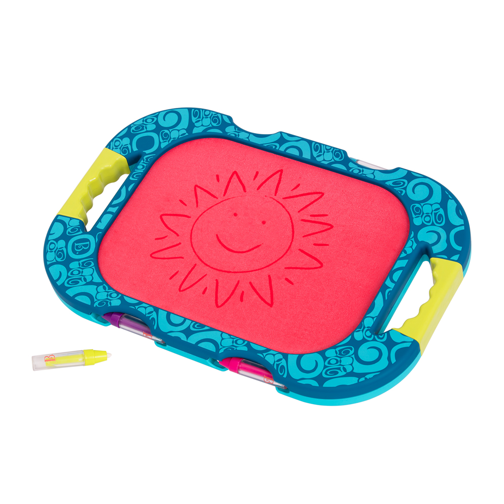 Lass die Kreativit deines Kleinen mit dem Water Doodler Zeichenbrett von B. Toys frei laufen! Fle einfach die 4 Marker mit Wasser und beginne, ein wenig Magie auf die wiederverwendbare Leinwand zu spritzen. Kinder sagen "Wow!", wenn sie sehen, wie die Bilder verschwinden und wieder auftauchen! Die Marker knen aurdem an das Brett geklippt werden, sodass du sie ordentlich verstauen und schnell aufrmen kannst. Dieses tragbare, doppelseitige Brett ist ein tolles Lernspielzeug f Kleinkinder, das ihnen hilft, verschiedene Zeichentechniken zu entdecken und ihre Fantasie anzuregen. Und da wir bei B. Toys stets auf die Umwelt achten, knen sich Eltern auch darer freuen, dass unsere Verpackung zu 100 % recycelbar ist! Geeignet f Kleinkinder ab 18 Monaten.