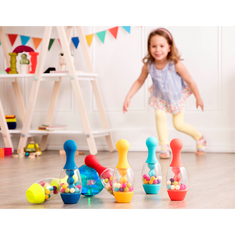 Ziehen Sie Ihre Bowlingschuhe an und machen Sie sich f ihren ersten Strike bereit! Die 6 Bowling Pin haben viele kleine bunte Blen im Inneren und sehen einfach toll aus! Mit der leuchtenden Bowling Kugel wird dann versucht die Bowling Pins umzuwerfen.