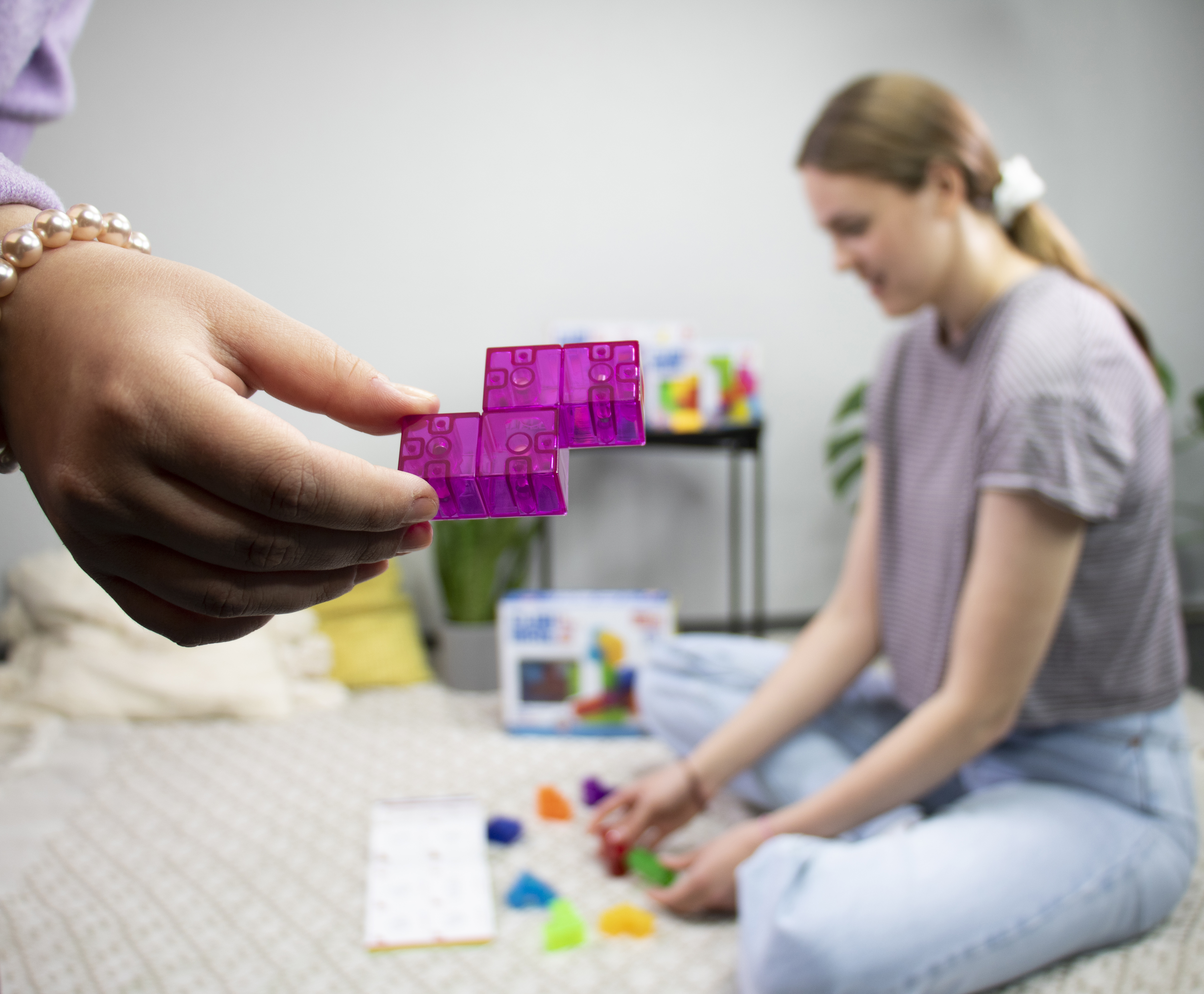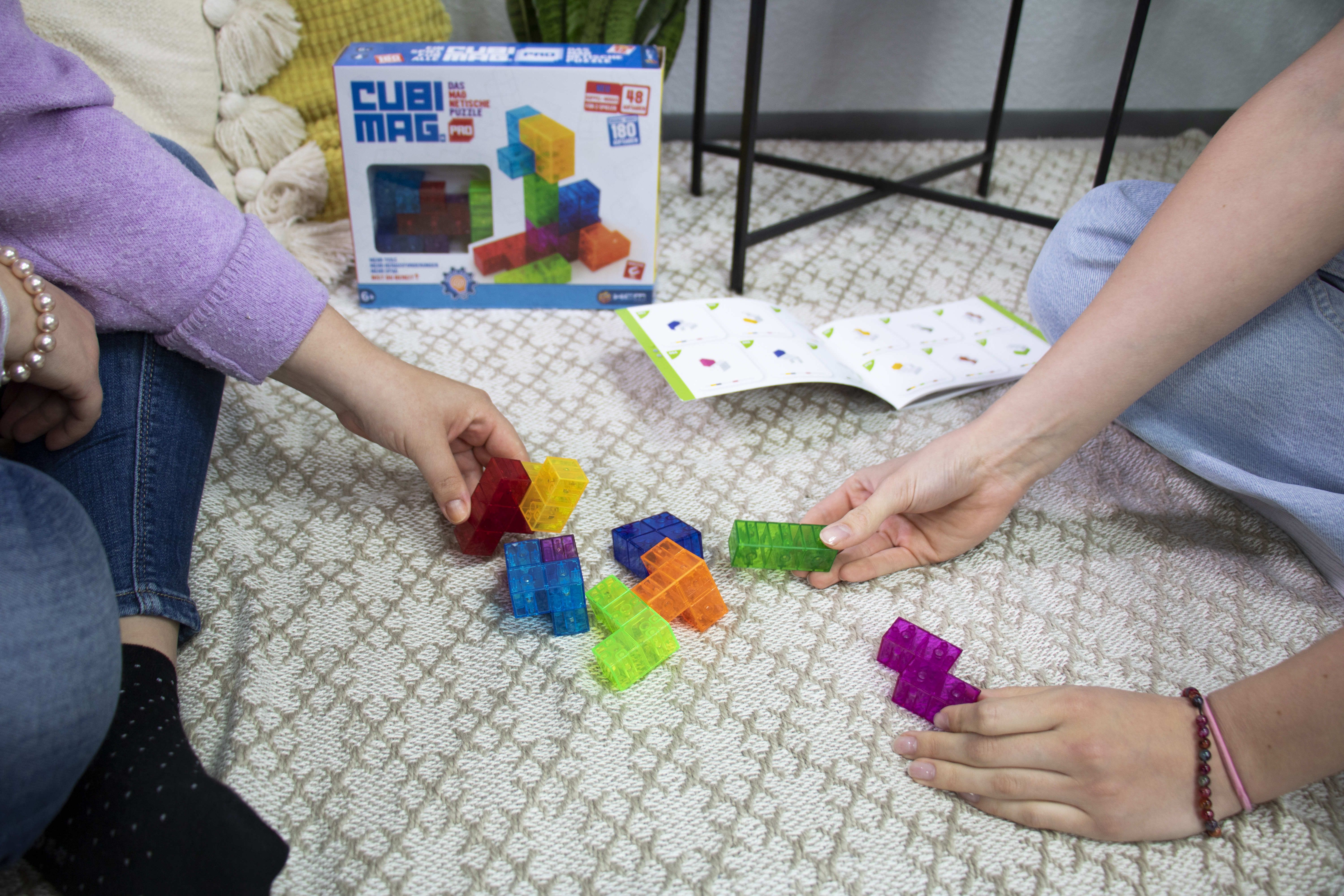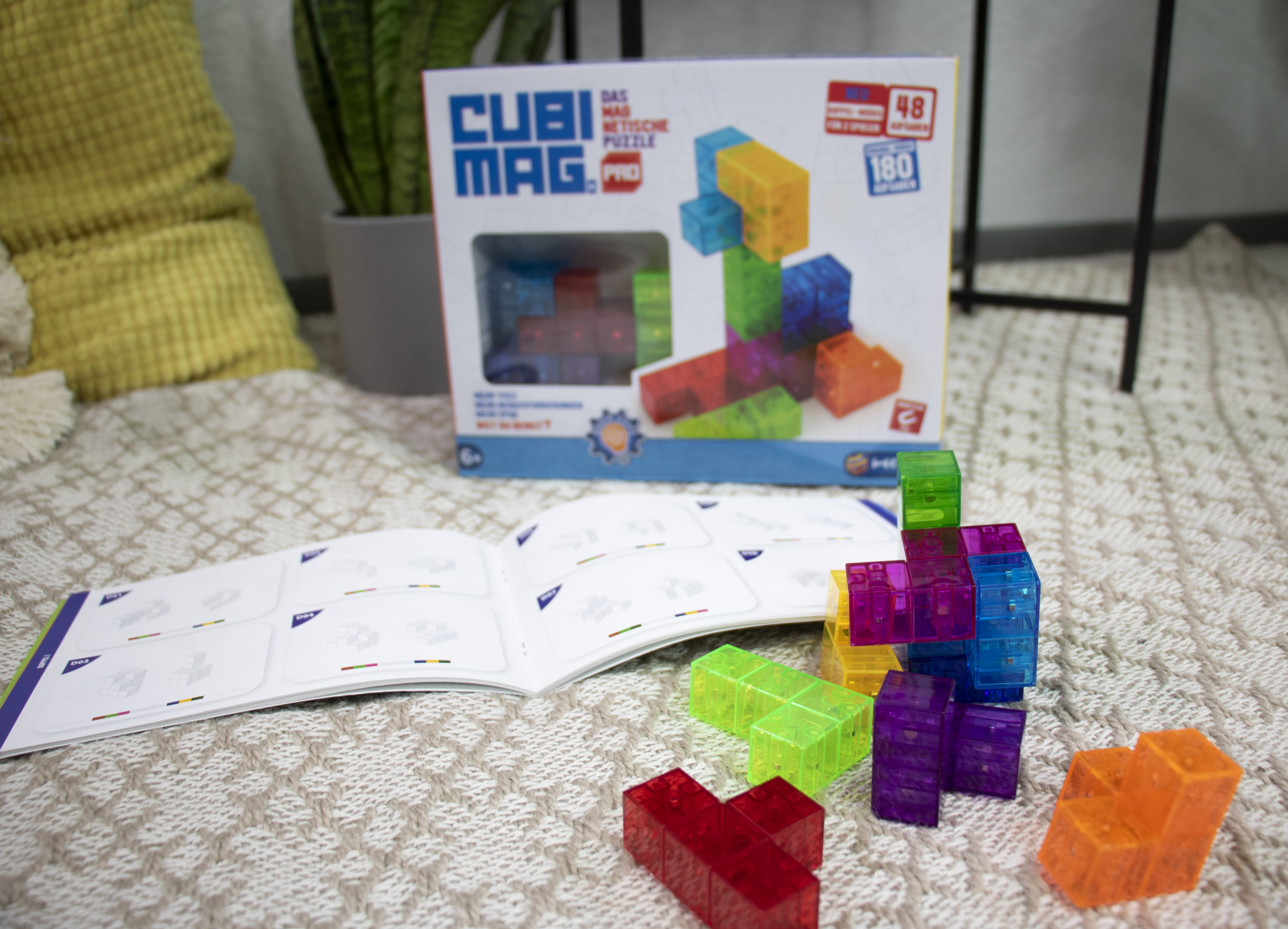 Cubimag PRO, die neue und erweiterte Variante von Cubimag, bietet faszinierendes 3D Puzzeln f alle Puzzleliebhaber. Die integrierten Magnete halten die bunten Puzzleteile in unterschiedlichen Formen und Farben wie durch Zauberhand zusammen. Auf kreative Weise forderst und fderst du mit dem magnetischen Puzzle logisches und rmliches Denken, wrend du dich er 180 spannenden Herausforderungen stellst. Mit mehr Teilen, mehr Herausforderungen und einem neuen Zwei-Spieler-Modus. Im coolen Cubimag PRO Doppelmodus kannst du gegen deine Freunde antreten. Wer von euch holt sich wohl den Sieg? 1. Wle eine Aufgabe aus dem Buch - Es gibt drei Stufen: leicht, mittel und fortgeschritten. 2. Wle, die f diese Herausforderung erforderlichen magnetischen Puzzleteile aus. Diese werden unter jeder Aufgabe angezeigt. 3. Le die Aufgabe alleine, oder duelliere dich mit einem Mitspieler. Euer Ergebnis knt ihr mit den Lungen am Ende des Buches erpren.