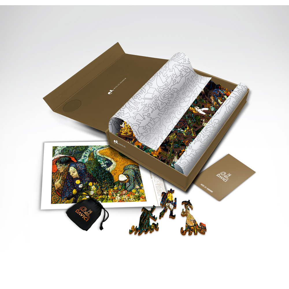 Spaziergang in Arles. Hermitage Kollektion. KstlerIn Vincent van Gogh, Leinwand, , 1888 DAVICI ist der aus Russland stammende Vorreiter im Bereich von Holzpuzzles mit fantasie-vollen Formen. Wie ein Buch erzlt die Box in deinen Hden die Geschichte der Kunstwerke mit Helden, Mchen und rselhaften Handlungen. DaVICI steht f einzigartige Puzzles aus hochwertigem Birkenholz mit extravaganten Formen und Liebe zum Detail. Durch prises Laserschneiden passen die aufwendig geformten Teile perfekt ineinander. In dieser Welt der Puzzles erwachen Menschen, Vel und wilde Tiere, Kige und Wanderer, Sterne und Plane-ten zum Leben. Die Motive der Puzzles basieren auf Gemden gror russischer Kstler. Das Gemde des Kstlers ergibt in Kombination mit den Puzzleteilen, die auf die Geschichte des Autors abgestimmt sind, ein vollkommenes Meisterwerk. Beim Zusammensetzen der intellek-tuellen DAVICI Puzzles tauchst Du in eine erstaunliche Welt voller Illusionen, Geheimnisse und Mysterien ein. Ein haptisches Vergnen mit grortigen Details und angenehmem Duft nach Holz. Die Puzzles von DAVICI schaffen wundervolle Erinnerungen und kostbare Gefle, und beleben etwas, das wirklich wertvoll ist.
