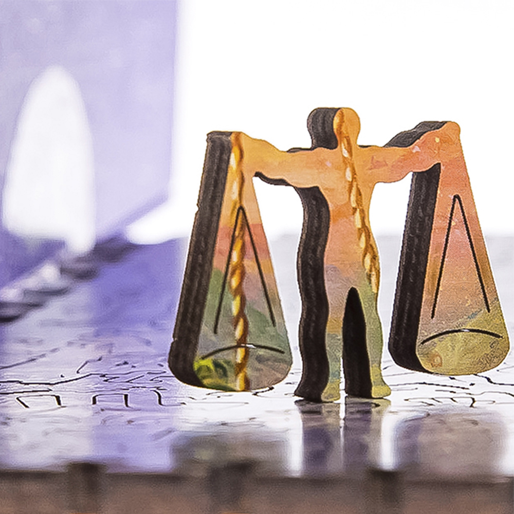 Sternzeichen Waage. Kollektion DaVICI Kids. KstlerIn Josephine Wall. Akryl, 2008 DAVICI ist der aus Russland stammende Vorreiter im Bereich von Holzpuzzles mit fantasie-vollen Formen. Wie ein Buch erzlt die Box in deinen Hden die Geschichte der Kunstwerke mit Helden, Mchen und rselhaften Handlungen. DaVICI steht f einzigartige Puzzles aus hochwertigem Birkenholz mit extravaganten Formen und Liebe zum Detail. Durch prises Laserschneiden passen die aufwendig geformten Teile perfekt ineinander. In dieser Welt der Puzzles erwachen Menschen, Vel und wilde Tiere, Kige und Wanderer, Sterne und Plane-ten zum Leben. Die Motive der Puzzles basieren auf Gemden gror russischer Kstler. Das Gemde des Kstlers ergibt in Kombination mit den Puzzleteilen, die auf die Geschichte des Autors abgestimmt sind, ein vollkommenes Meisterwerk. Beim Zusammensetzen der intellek-tuellen DAVICI Puzzles tauchst Du in eine erstaunliche Welt voller Illusionen, Geheimnisse und Mysterien ein. Ein haptisches Vergnen mit grortigen Details und angenehmem Duft nach Holz. Die Puzzles von DAVICI schaffen wundervolle Erinnerungen und kostbare Gefle, und beleben etwas, das wirklich wertvoll ist.