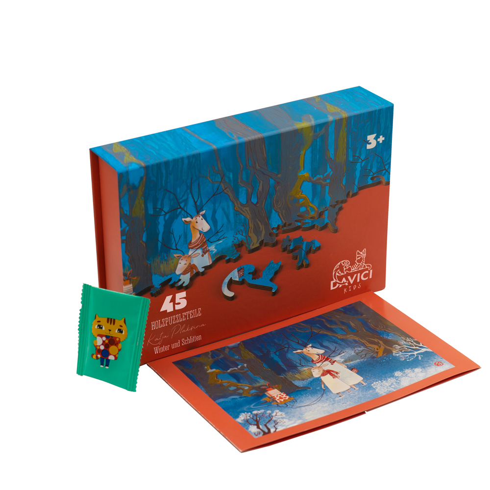 Winter und Schlitten Kollektion DaVICI Kids. KstlerIn Katya Paksina DAVICI ist der aus Russland stammende Vorreiter im Bereich von Holzpuzzles mit fantasie-vollen Formen. Wie ein Buch erzlt die Box in deinen Hden die Geschichte der Kunstwerke mit Helden, Mchen und rselhaften Handlungen. DaVICI steht f einzigartige Puzzles aus hochwertigem Birkenholz mit extravaganten Formen und Liebe zum Detail. Durch prises Laserschneiden passen die aufwendig geformten Teile perfekt ineinander. In dieser Welt der Puzzles erwachen Menschen, Vel und wilde Tiere, Kige und Wanderer, Sterne und Plane-ten zum Leben. Die Motive der Puzzles basieren auf Gemden gror russischer Kstler. Das Gemde des Kstlers ergibt in Kombination mit den Puzzleteilen, die auf die Geschichte des Autors abgestimmt sind, ein vollkommenes Meisterwerk. Beim Zusammensetzen der intellek-tuellen DAVICI Puzzles tauchst Du in eine erstaunliche Welt voller Illusionen, Geheimnisse und Mysterien ein. Ein haptisches Vergnen mit grortigen Details und angenehmem Duft nach Holz. Die Puzzles von DAVICI schaffen wundervolle Erinnerungen und kostbare Gefle, und beleben etwas, das wirklich wertvoll ist.