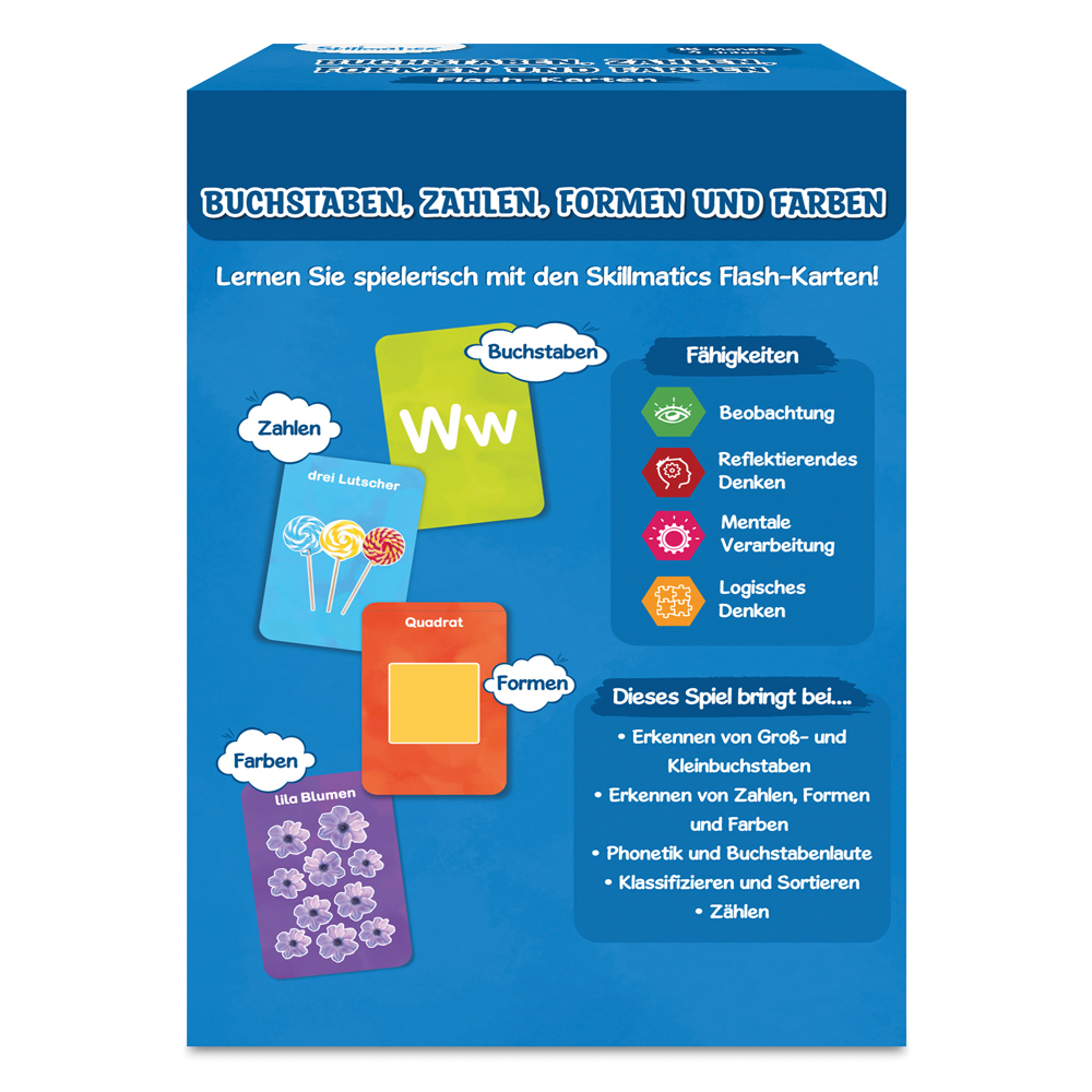 Erlebe mit unserem Spiel eine lehrreiche und unterhaltsame Zeit! Durch die toll bemalten Bildkarten mit Buchstaben, Zahlen und bunten Formen knen Kinder spielerisch das Alphabet, Gegenstde, Farben und Formen lernen und interaktiver zu gestalten.