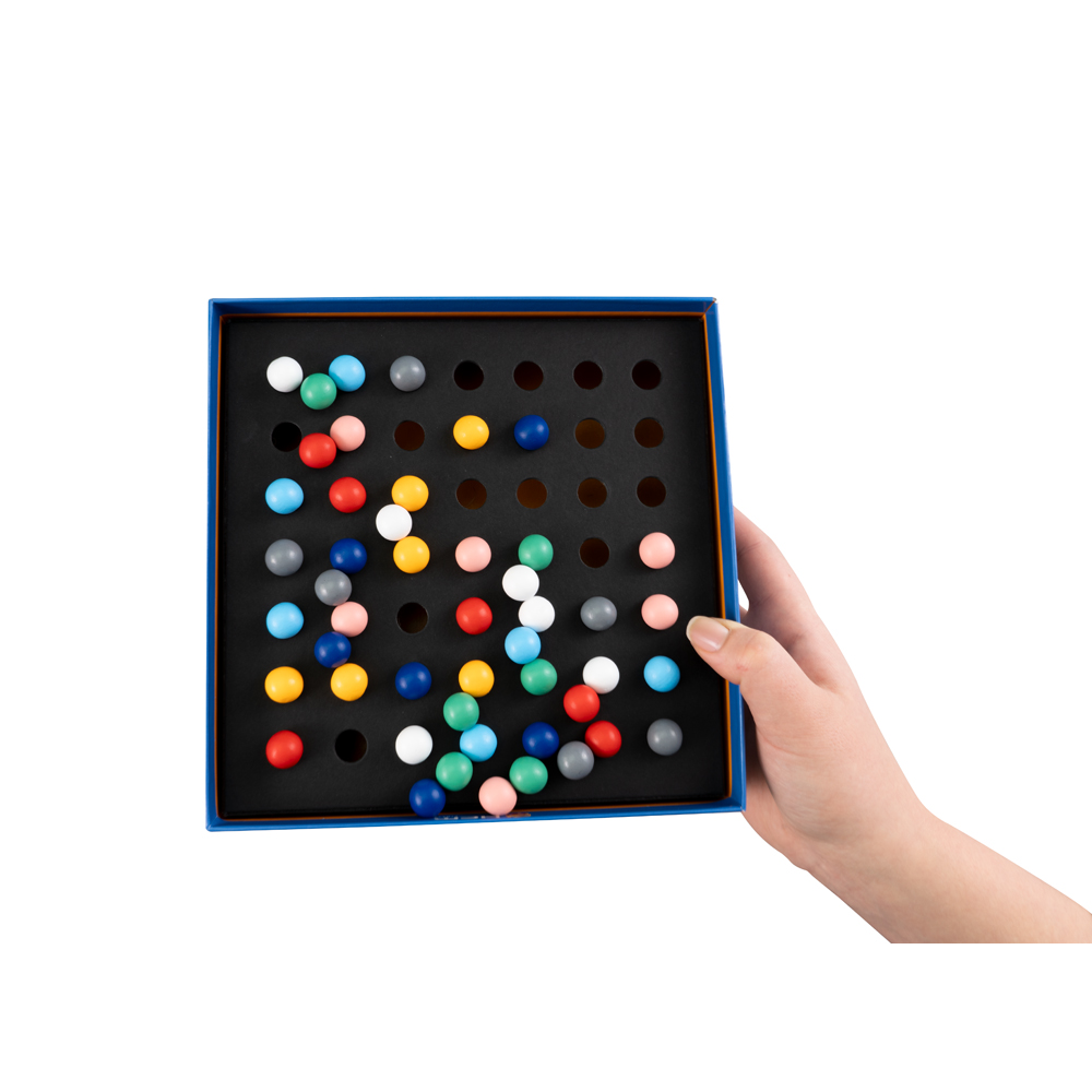 Dies ist ein aurgewnliches Spiel. Es ist einfach ruhig. Zu Beginn liegen hzerne Murmeln in zufliger Reihenfolge. Du beruhigst dich. Konzentration. Und dann beginnst du, die Murmeln nach Farbe zu gruppieren. Wechsle dich mit deinem Partner ab, arbeite zusammen aber ohne zu sprechen. Verwende so wenige Ze wie mlich. Teile das Ziel, wlt eure Herangehensweisen. In Stille. Bleibe fokussiert. Ein kooperatives Strategiespiel f 1-4 Spieler, 10 Minuten, ab 8 Jahren. Regeln in Englisch, Finnisch, Schwedisch, Disch, Norwegisch, Franzisch und Deutsch.