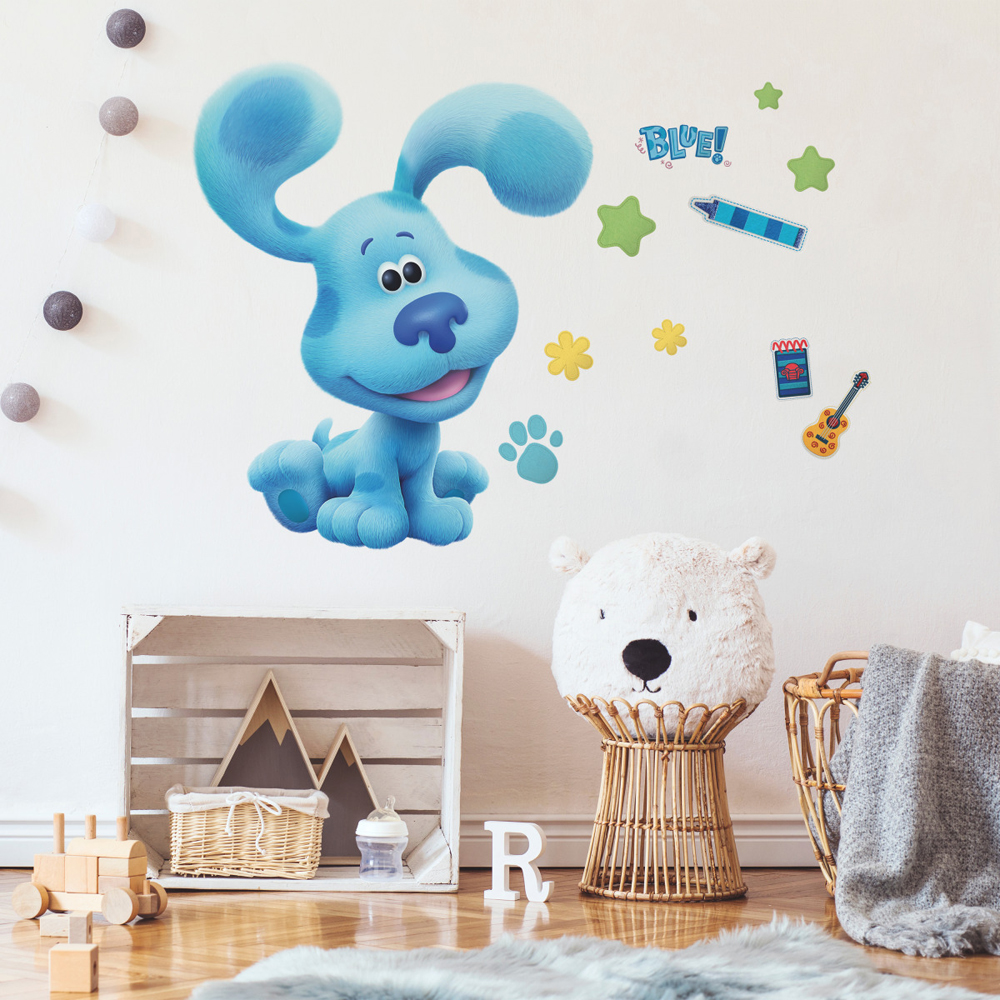 Fe einen Hauch von Spaund Farbe im Zimmer deines Kleinen hinzu mit diesem riesigen Blues Clues Peel and Stick Wandtattoo von RoomMates.