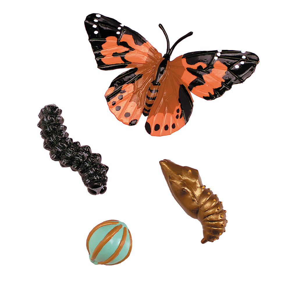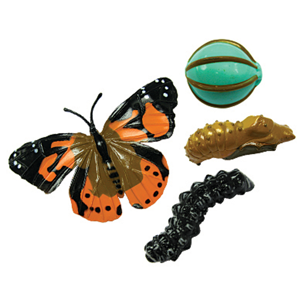 Der Lebenszyklus eines der faszinierendsten Geschfe der Natur erwacht mit diesen detaillierten Figuren zum Leben. Die Figuren zeigen die vier Stufen der Entwicklung eines Schmetterlings - Ei, Raupe, Puppe und den ausgewachsenen Schmetterling. Die Figuren sind in der Form und der Bemalung prise und naturnah gestaltet. Die realistisch dargestellte Gestaltung des Lebenszyklus weckt das Interesse mehr er das Tier zu erfahren und zu lernen.