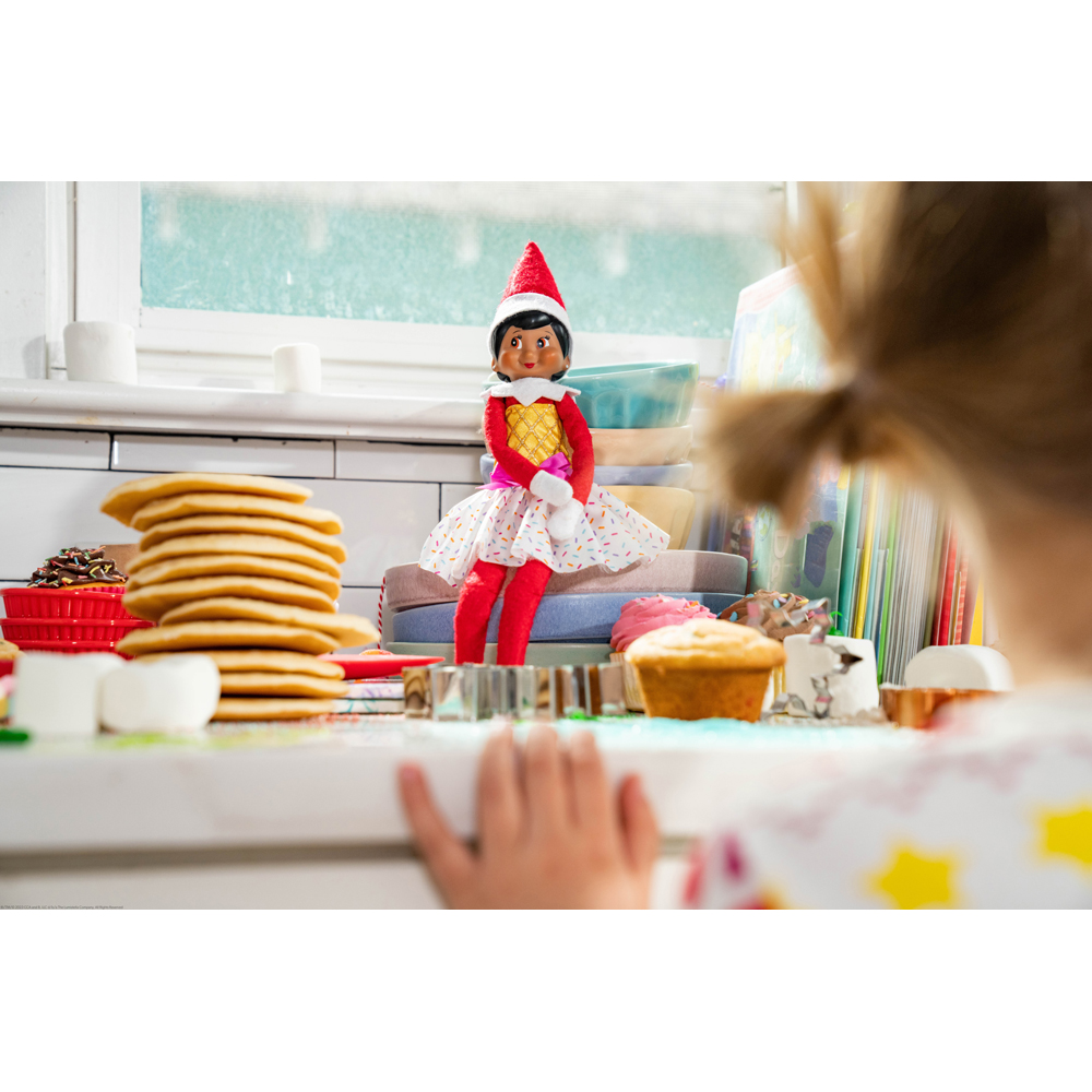 "Bereite dich auf eine zuckersüße Weihnachtszeit vor! Mit dem The Elf on the Shelf® - Claus Couture® Eiscreme Partykleid wird dein Scout Elf zum strahlenden Mittelpunkt jeder Feier. Dieses farbenfrohe Kleid mit bunten Streuseln, einer eleganten pinkfarbenen Schleife und glitzernden goldenen Fäden bringt den Charme eines Eiscreme-Traums direkt in dein Zuhause.